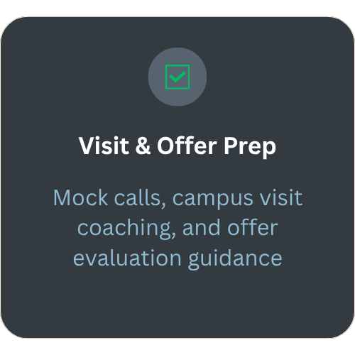 Reach your goal → guided through schools, scholarships, visits, and offers.